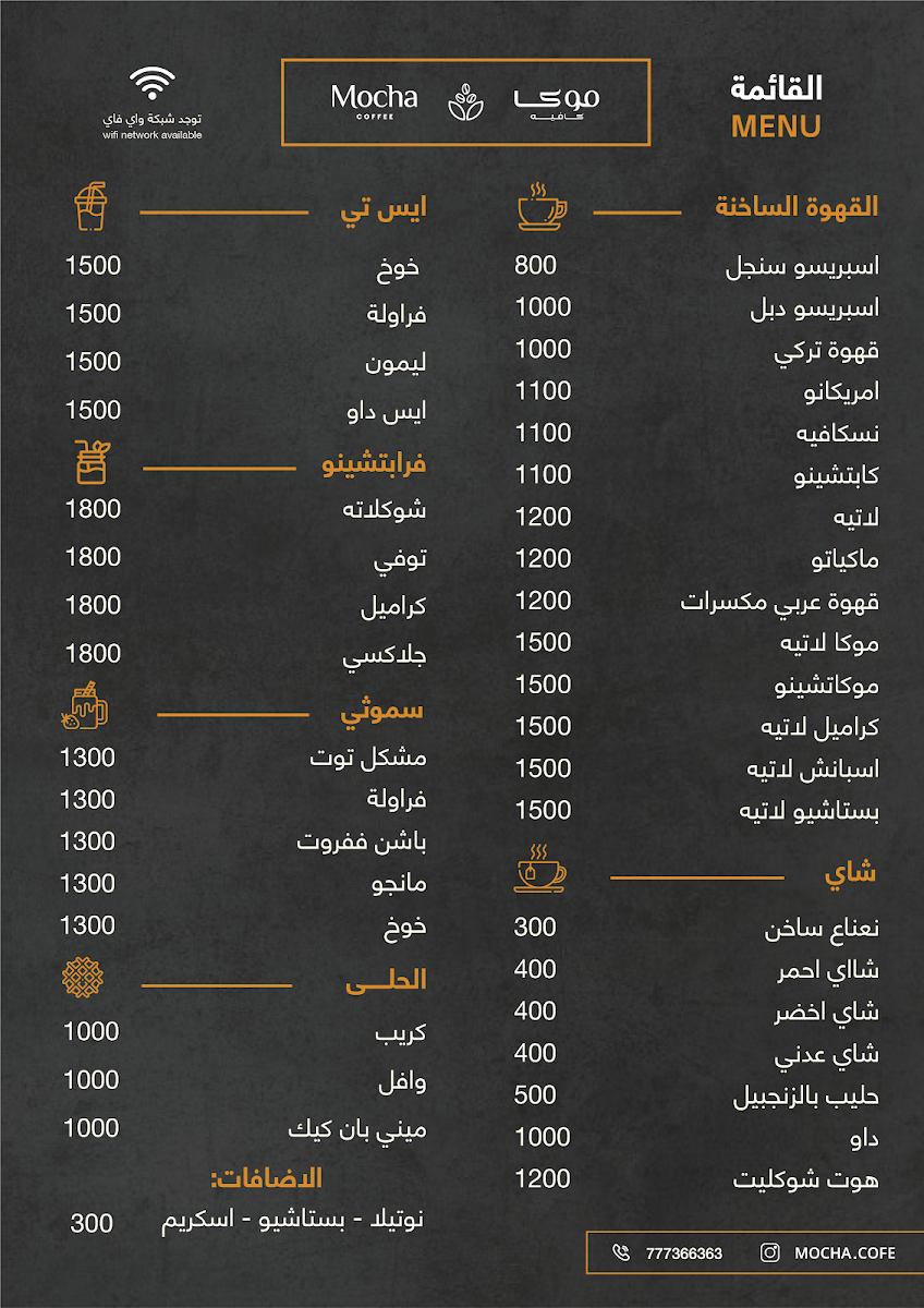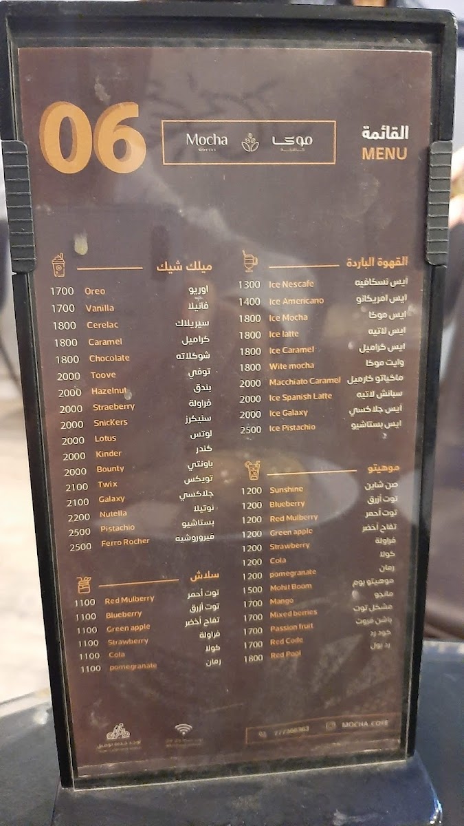 In summary, Mocha coffee موكا كافيه is a gem in Seiyun where you can enjoy high-quality coffee in a stylish setting. Whether you're stopping by for a quick caffeine fix or settling in for an extended catch-up with friends, this café promises a delightful experience that appeals to both the palate and the heart.